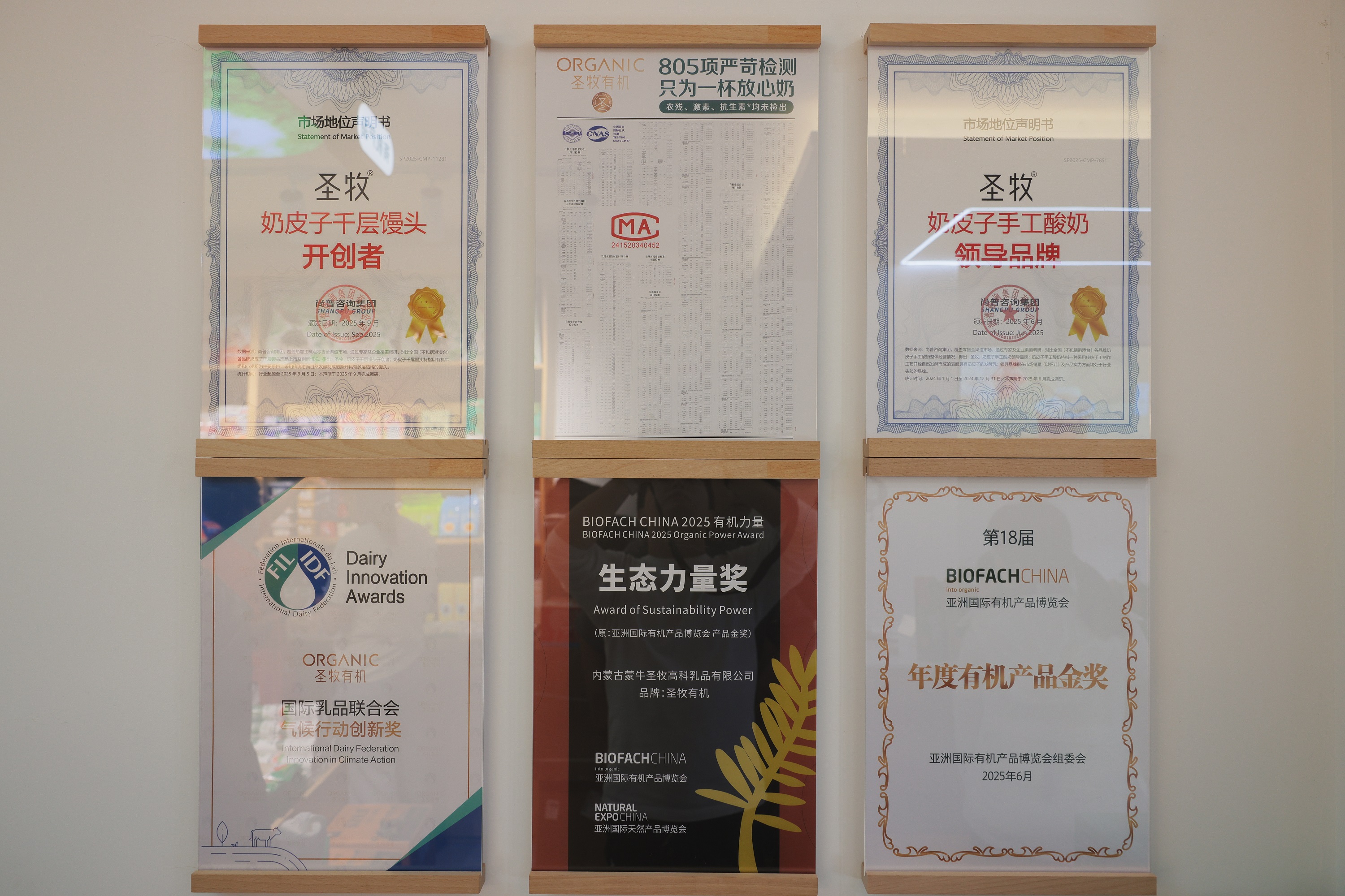圣牧深耕有机乳品16年,形成了从牧草种植、奶牛饲喂,到原奶检测、成品包装的全链路体系。原奶在蛋白质、钙等核心指标上执行的是高于一般标准的要求,并通过中国有机认证和多项检测进行约束。