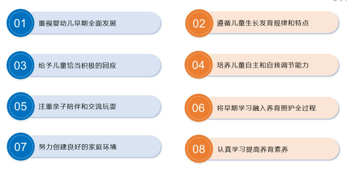 重视早期全面发展,不局限于体格发育,更要关注语言、认知和情感成长;遵循宝宝的生长规律,不盲目攀比 “早走路、早说话”;对宝宝的需求给予及时回应,建立安全感;培养自主能力,让宝宝学会自己吃饭、穿衣;亲子陪伴是最好的教育,多和宝宝交流玩耍;把学习融入日常,比如吃饭时认识食物、玩耍时感知色彩;打造和谐的家庭环境,家人养育观念保持一致;家长也要持续学习,提升自身养育素养。