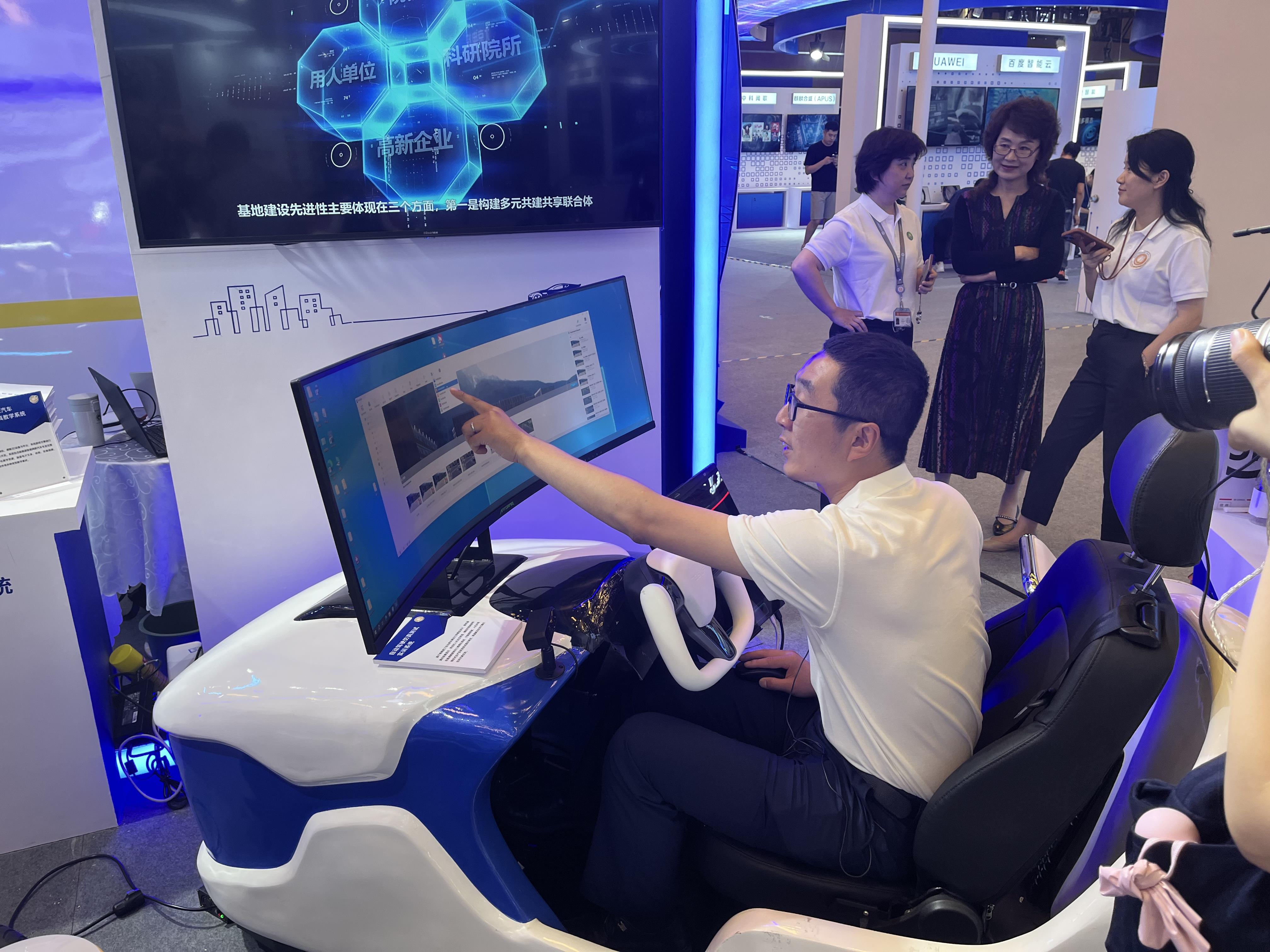 与以往不同的是,今年的数字经济大会特意增加了现场体验环节,增加观展过程的趣味性和参与性。在大会成果展示区,观众可以戴上智能可穿戴设备完成一次穿越之旅,也可以用数字化技术提前预知未来建筑的内部构造,还可以坐进模拟驾驶器内,来一场效果逼真的赛车比拼……