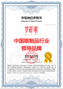 市场地位声明:梦祥银,中国银制品行业领导品牌